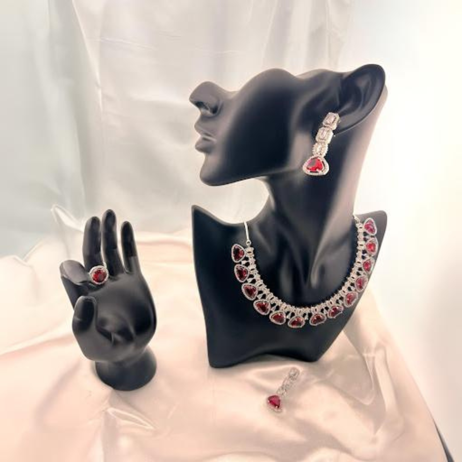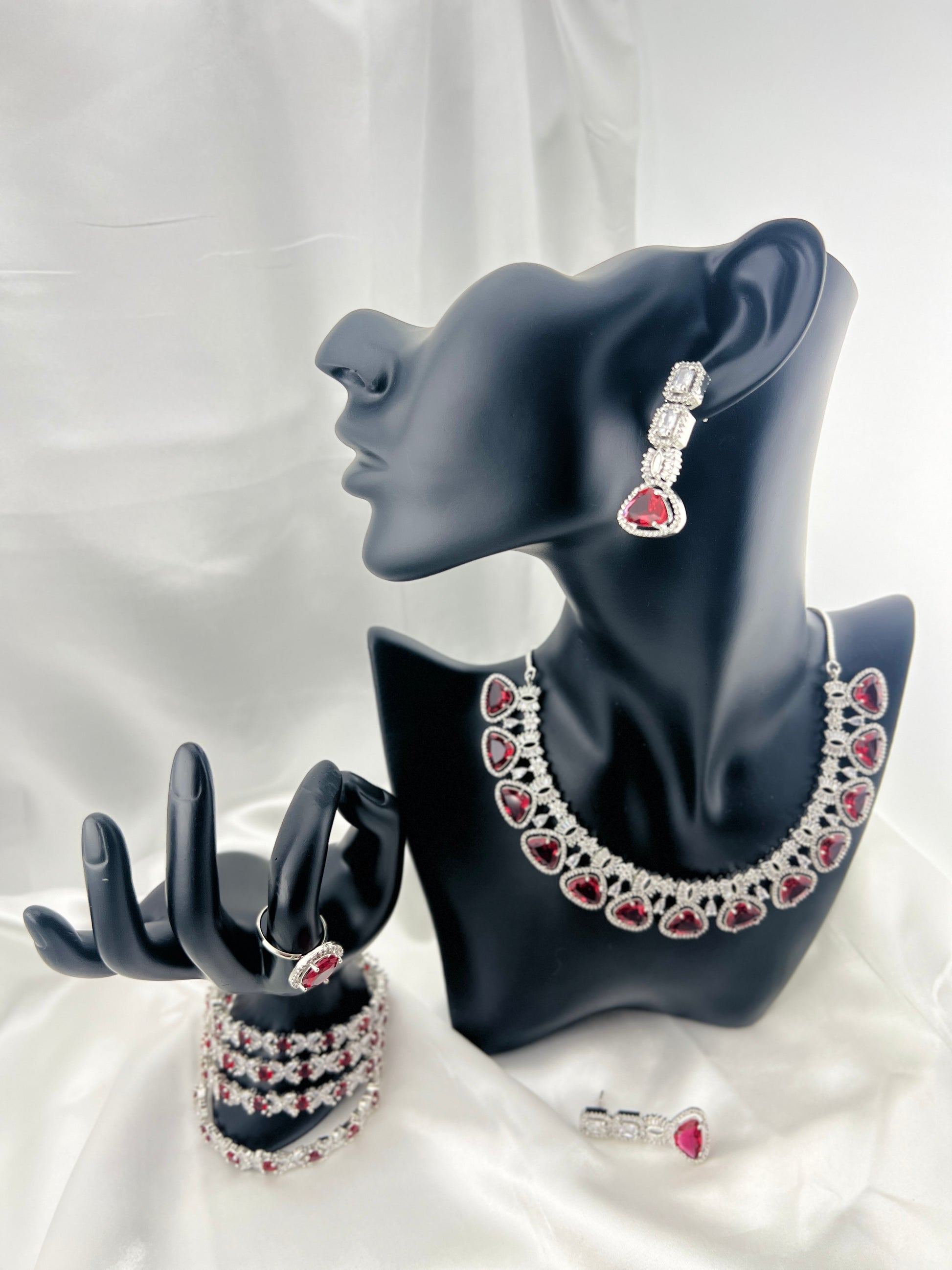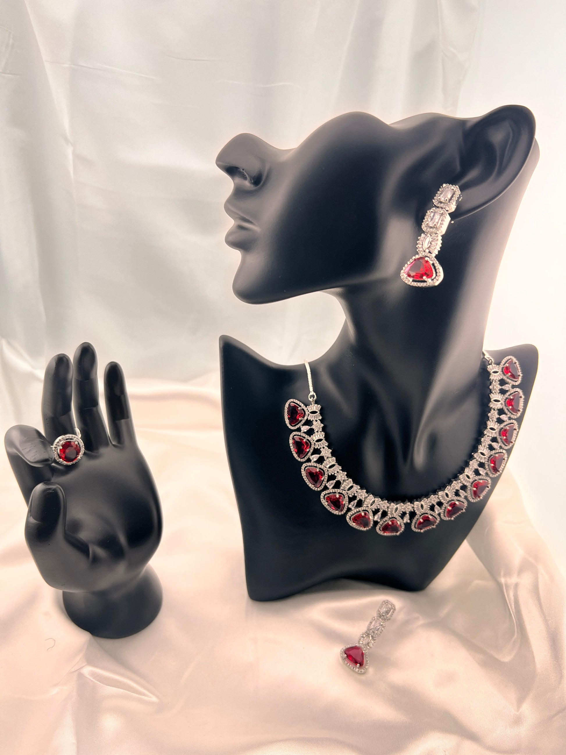Included: 1 Necklace with earrings and a matching ring.