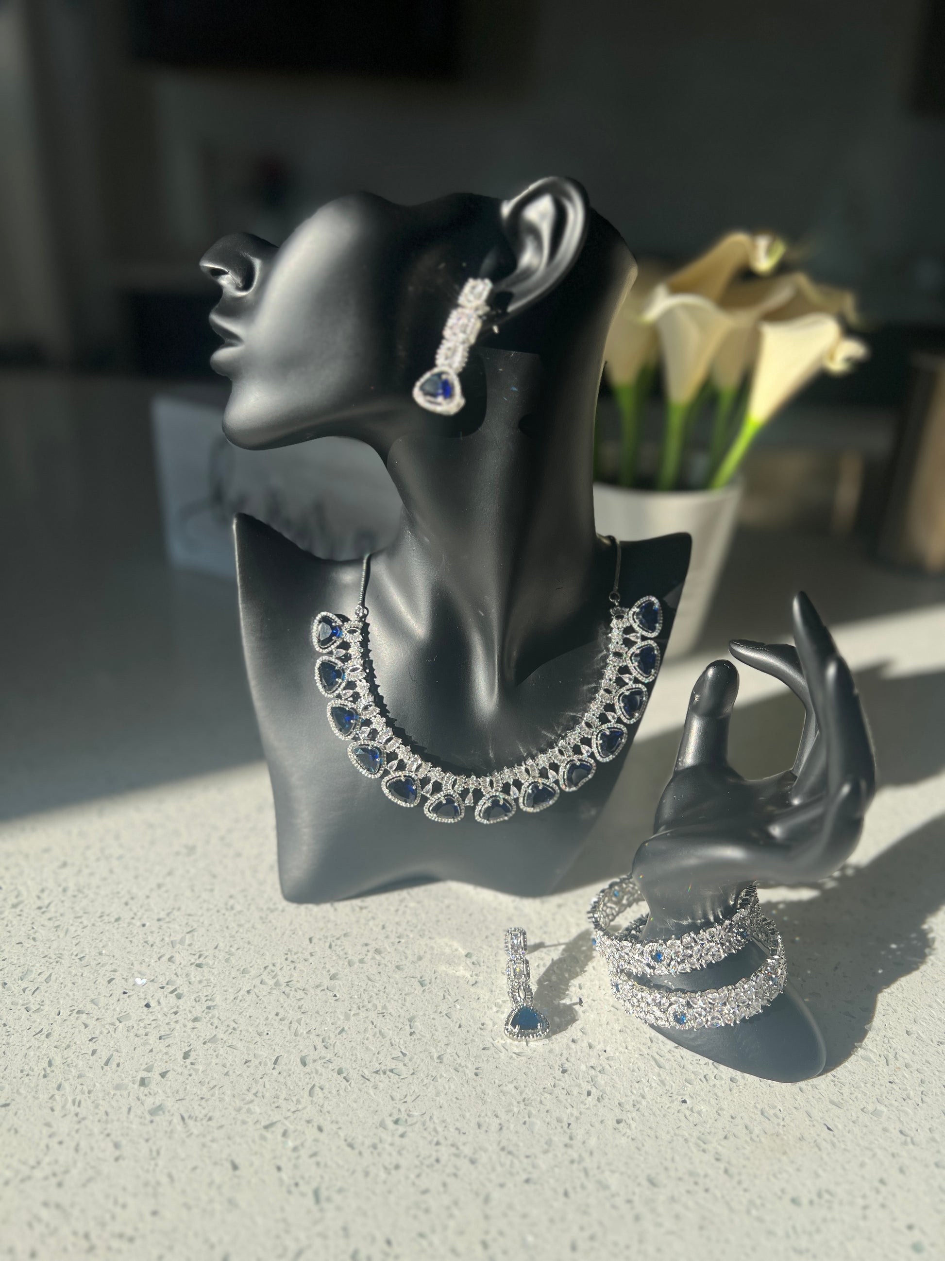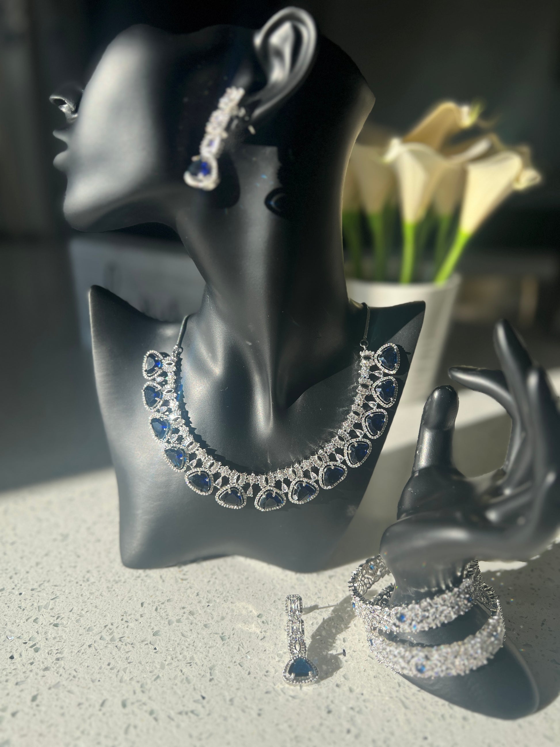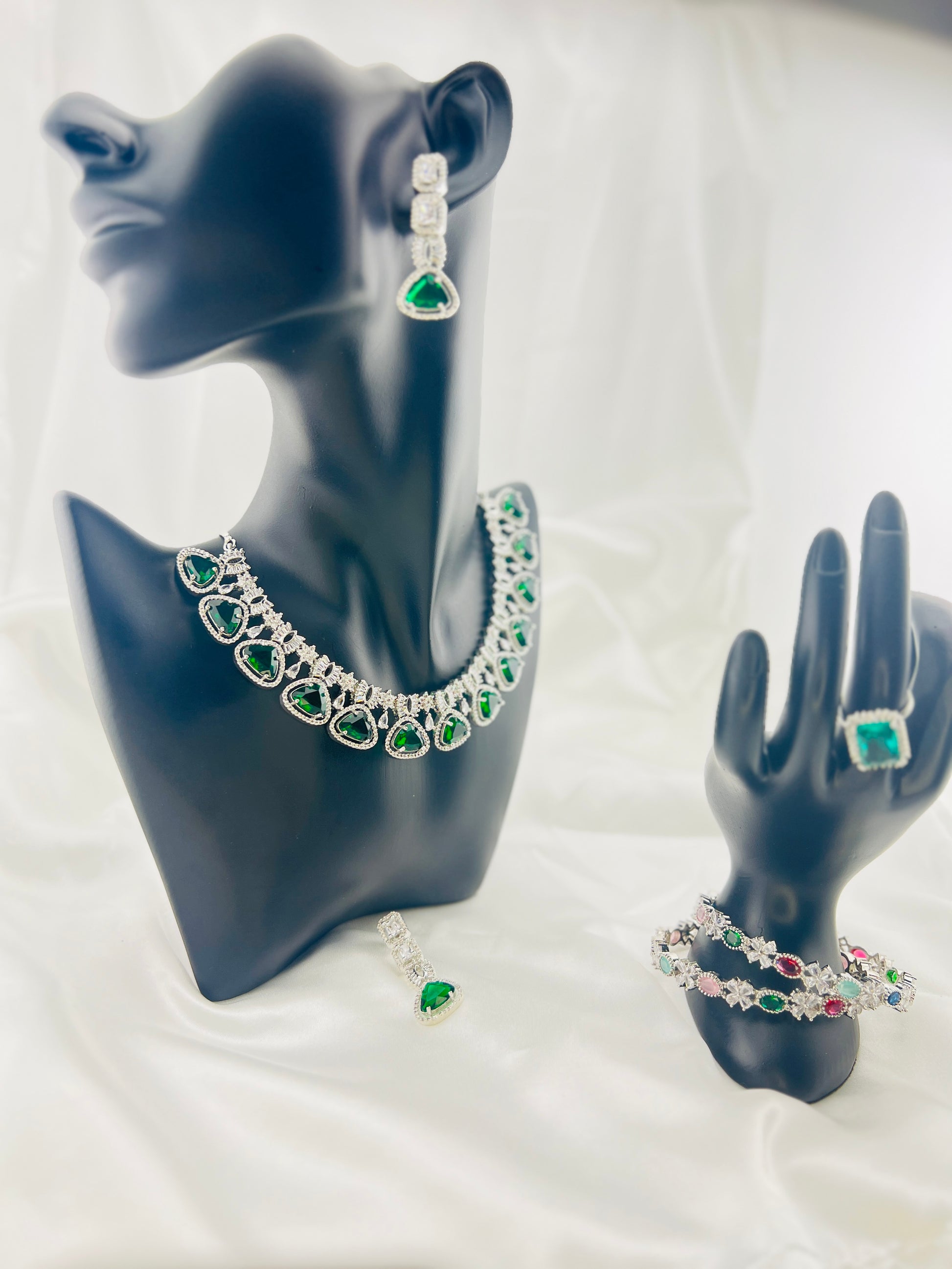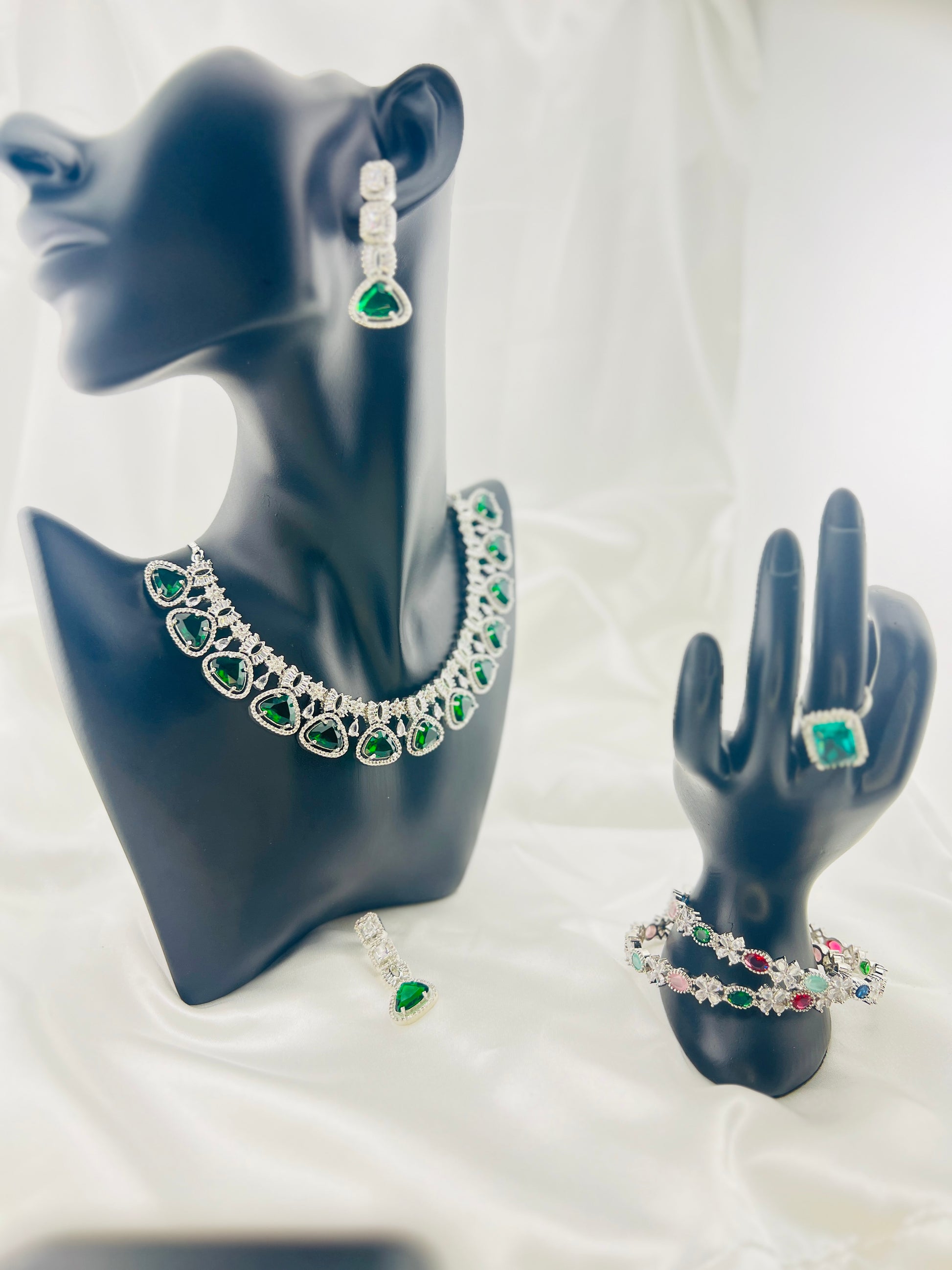 Included: 1 Necklace with earrings and a matching ring.