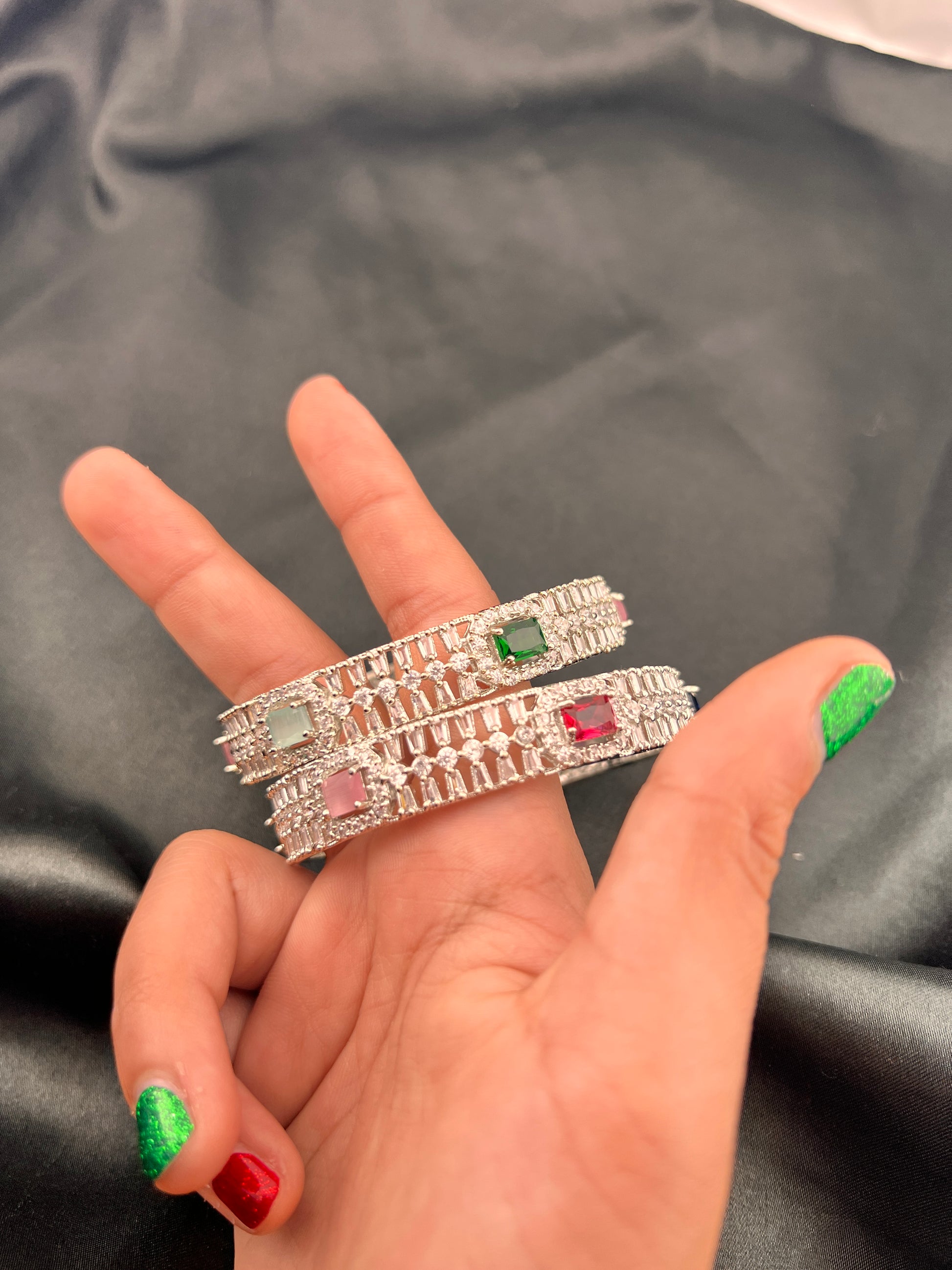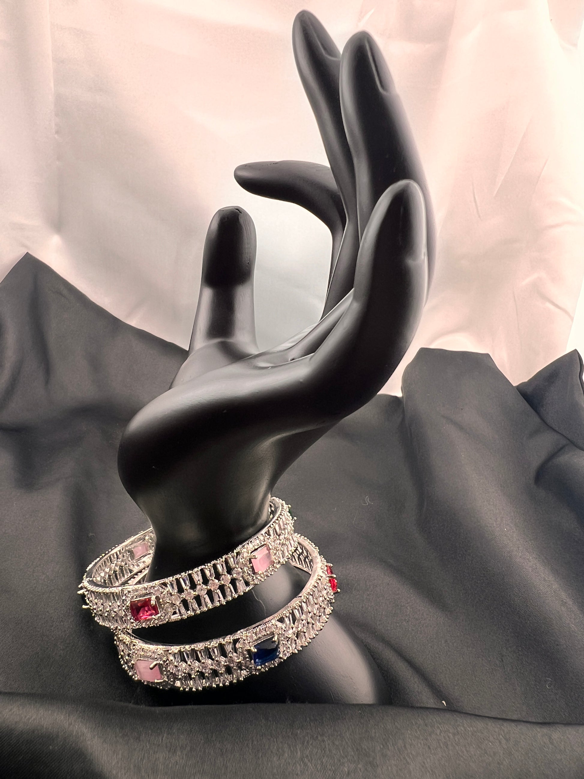 Set of 2 Multicolored Cubic Zirconia Diamond Bangles