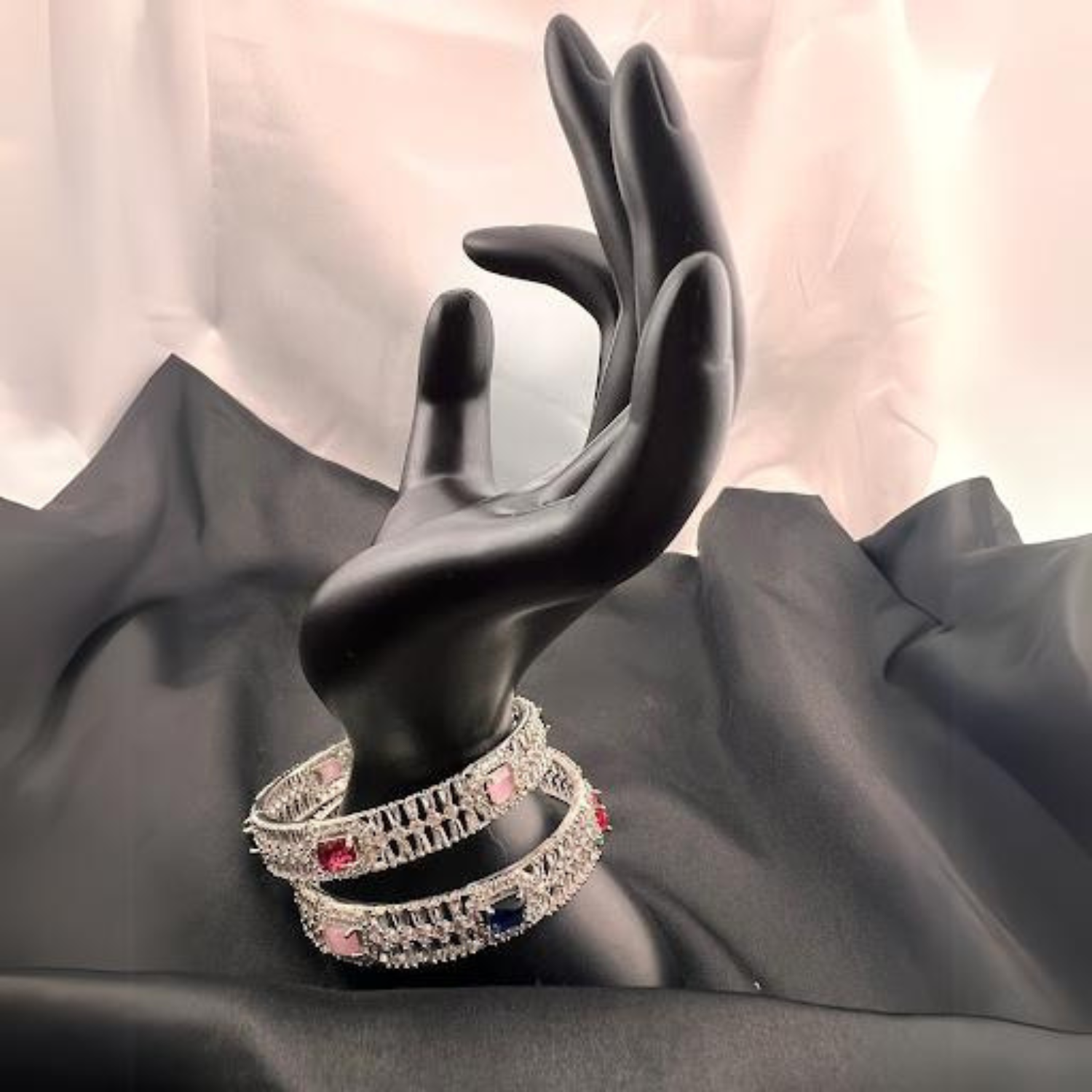 - Adorn your wrist with sophistication through this captivating bangle featuring radiant multi colored lustrous cubic zirconia accents. It is meticulously crafted to emulate the sparkle of diamonds, adding a touch of refined elegance to each piece.