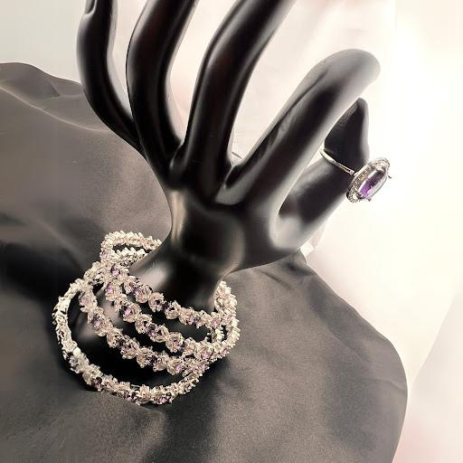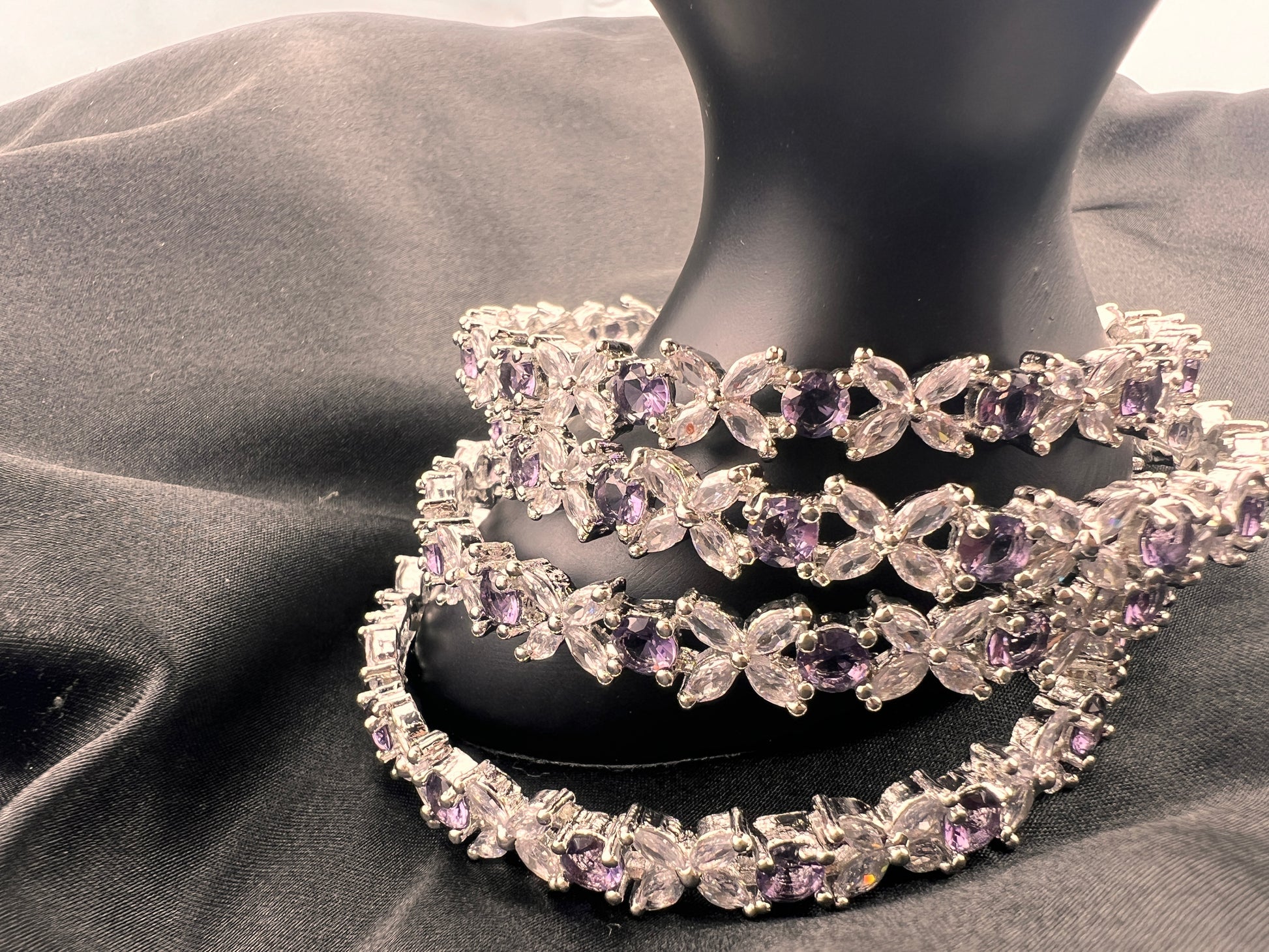 - Embellish your wrist with sophistication through this captivating bangle featuring radiant and lustrous cubic zirconia accents. It is meticulously crafted to emulate the sparkle of cubic zirconia diamonds, adding a touch of refined elegance to each piece.